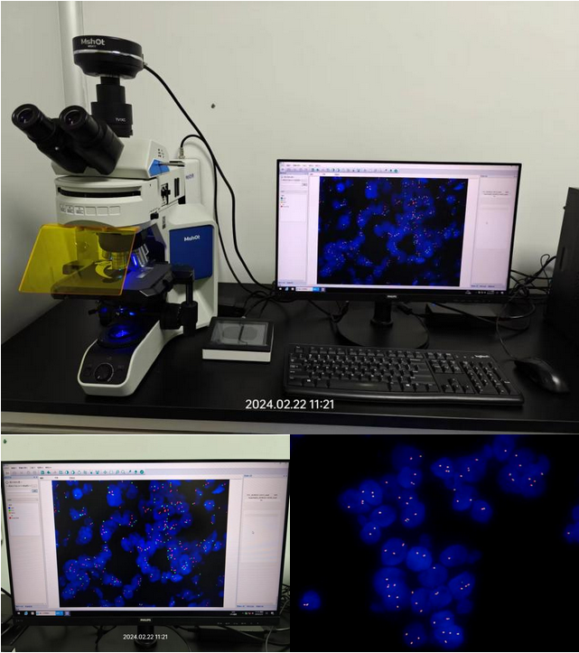 實(shí)驗(yàn)主要使用明美研究級(jí)顯微鏡MF43-N和FISH熒光原位雜交分析系統(tǒng)進(jìn)行,熒光顯微鏡用于熒光激發(fā)和放大FISH樣品的信號(hào)點(diǎn),F(xiàn)ISH熒光原位雜交分析系統(tǒng)可對(duì)熒光顯微圖像進(jìn)行捕捉和處理。