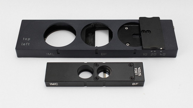 IMC可調(diào)的狹縫插板,統(tǒng)一的物鏡調(diào)制器(IMC/BF文字和孔位相對(duì)而非相鄰)