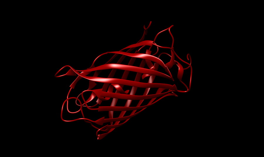 mCherry的結(jié)構(gòu)渲染圖,外層螺旋是β-桶結(jié)構(gòu)