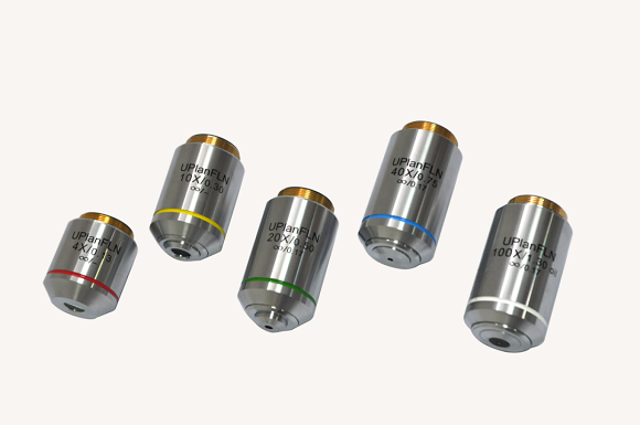 半復(fù)熒光物鏡:高數(shù)值孔徑的半復(fù)熒光物鏡,擁有高清晰度與熒光透過率等性能,在明場熒光下成像銳利,能滿足各個(gè)熒光領(lǐng)域的觀察。