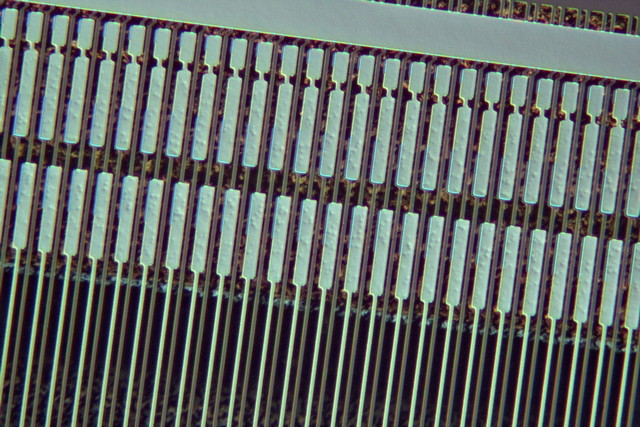 比如在液晶面板ACF層結(jié)構(gòu)中有導(dǎo)電粒子,其填充情況對面板良率有極大影響,使用DIC照明可以看到導(dǎo)電粒子形成的微小凸起,從而快速評估工藝結(jié)果是否符合預(yù)期。此外液晶屏噴漆的漆體顆粒、液晶屏細(xì)微劃痕等瑕疵,也可以使用DIC觀察發(fā)現(xiàn)。