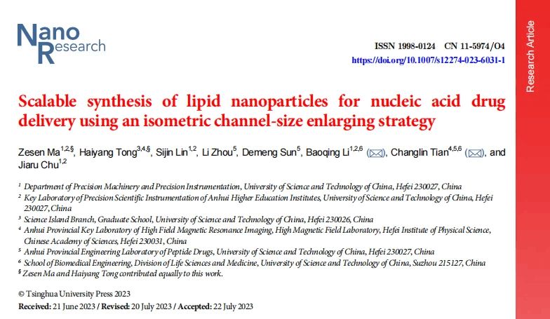 在生物醫(yī)藥領(lǐng)域,脂質(zhì)納米顆粒(LNPs)作為核酸藥物遞送的重要載體,受到越來越多的關(guān)注。一項(xiàng)發(fā)表在《Nano Research》上的研究,利用明美倒置顯微鏡MI52-N,在解決脂質(zhì)納米顆粒(LNPs)大規(guī)模合成中粒徑一致性的問題方面,做出了卓有成效的探索推進(jìn)。