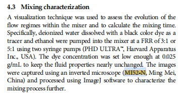 明美倒置顯微鏡MI52-N 在這項(xiàng)研究中發(fā)揮了關(guān)鍵作用。其高分辨率和清晰的成像能力,使得研究人員能夠精確觀察微流控芯片內(nèi)的流動(dòng)情況,從而準(zhǔn)確測(cè)量混合時(shí)間。這為研究人員提供了重要的數(shù)據(jù)支持,幫助他們優(yōu)化合成參數(shù),確保合成的 LNPs 具有一致的物理性質(zhì)。