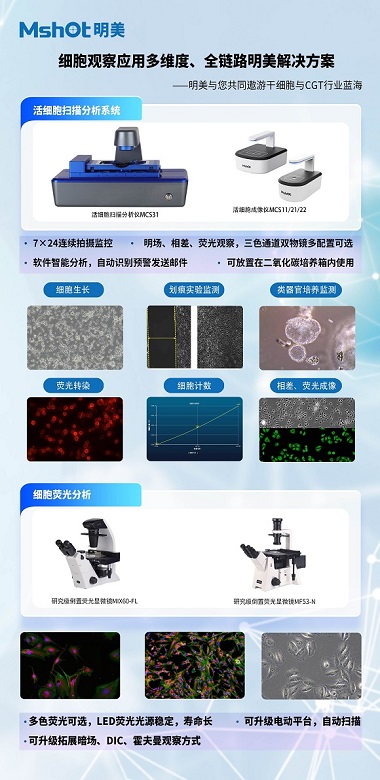 在展會現(xiàn)場,干細胞的研究與應(yīng)用成為大家熱議的焦點。干細胞作為生物醫(yī)學(xué)領(lǐng)域的前沿方向,其在再生醫(yī)學(xué)、疾病治療、藥物研發(fā)等方面展現(xiàn)出巨大的潛力。明美光電的產(chǎn)品在干細胞研究中也發(fā)揮著重要作用。