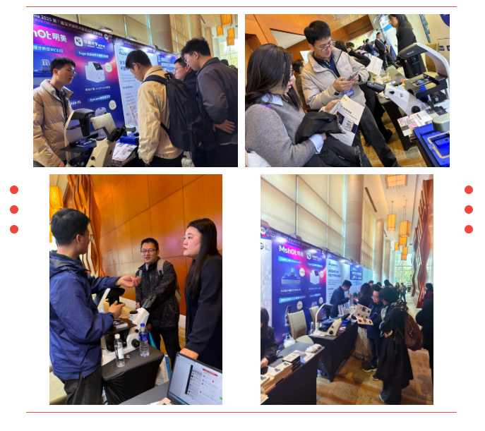 展會期間,明美光電A4展位吸引了眾多行業(yè)專家、科研人員駐足交流?,F(xiàn)場技術(shù)人員為用戶演示了活細(xì)胞掃描分析儀MCS31倒置熒光顯微鏡MIX60-FL等核心功能,不少用戶親自操作體驗,對產(chǎn)品的穩(wěn)定性和成像效果給予高度評價。