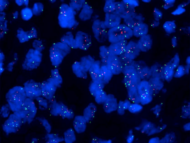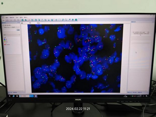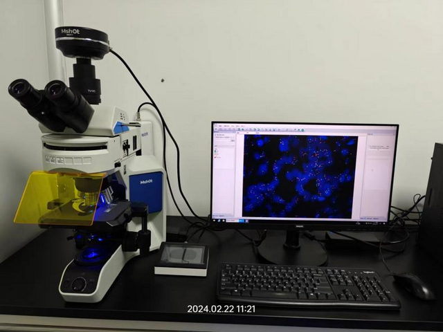 深圳某科研檢測(cè)公司需要開(kāi)展對(duì)腫瘤的輔助診斷研究,需要用到熒光原位雜交技術(shù)(Fluorescence In Situ Hybridization, FISH). Mshot明美推薦了研究級(jí)熒光顯微鏡MF43-N搭配四通道光源MG-120,可以即開(kāi)即用提供高質(zhì)量的熒光和明場(chǎng)成像,可以自主選擇和升級(jí)熒光激發(fā)塊,可對(duì)FISH樣品進(jìn)行單色熒光或雙色熒光觀察。搭配明美自主研發(fā)的FISH熒光原位雜交分析軟件,快速成像,自動(dòng)著色,一鍵合成多色熒光圖像,直觀地判斷最終的實(shí)驗(yàn)結(jié)果,功能強(qiáng)大,使用方便,效果得到客戶認(rèn)可。